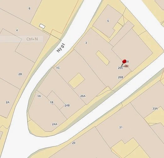 Nedre Bakklandet 42 er i dag en ubebygd tomt, på enden av kvartalet som ligger mellom Nedre Bakklandet og Nygata. (Kart: Trondheim Kommunes interaktivt kart)