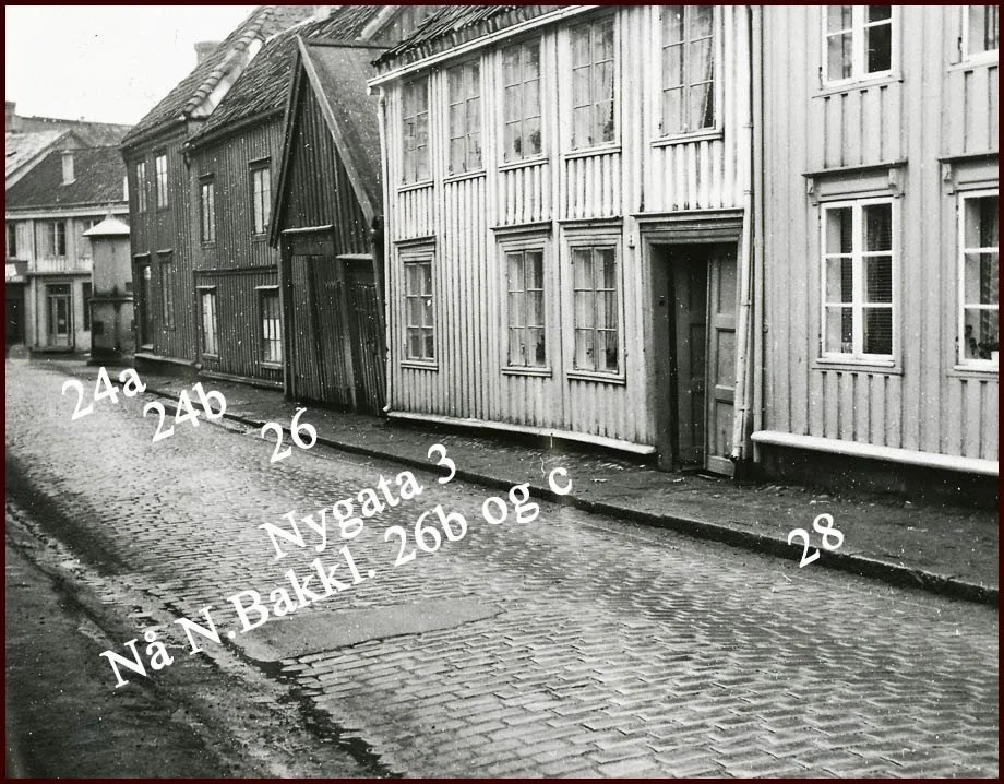 Eiendommen Nedre Bakklandet 26 b og c, var fra gammelt av en del av Nygata 3. I 1964 var det fremdeles sånn, og endringen kom ikke før det ble revet og satt opp nye bygg.