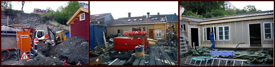 Anleggsperiode i 2003 ved Nedre Bakklandet 39 - Nytt garasjeanlegg i fjellet bygges. (Foto: Beboere i NB39 )