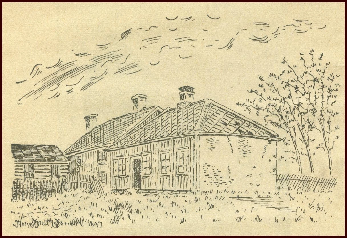 Tegning av Bramsalen eller Pramsalen, tidligere skjenkested på Nedre Bakklandet. Var ofte tilholdssted for sjøfolk. Gården lå på hjørnet av Kirkegata og Nordre Berggate, på toppen av Asylbakken. Bakke bydelshus ble oppført på tomten i 1913-1914, med adresse Nordre Berggate 2.