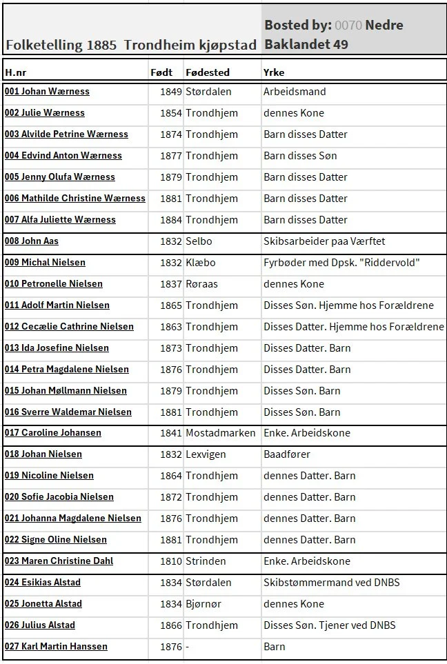 Ved folketellingen i 1885 er det registrert ikke mindre enn 27 personer som bor i huset.