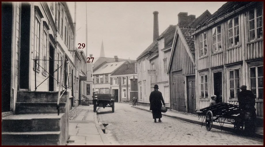 Mye har endret seg siden dette bildet ble tatt. Huset i forgrunnen, som lå i bakgården til nr. 31/33, eksisterer ikke lenger.