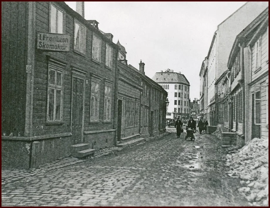 Gatestumpen ble, på grunn av hullene i bakken, kalt Via Dolorosa. (Foto: Ukjent) Kilde Trondheim Byarkiv