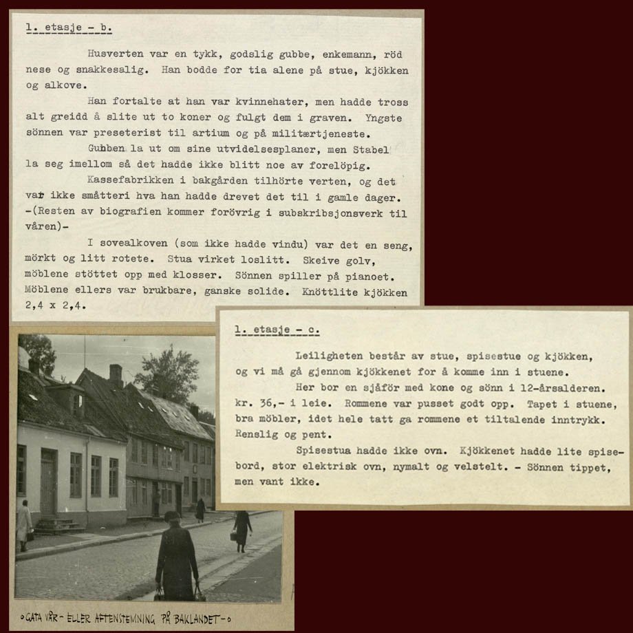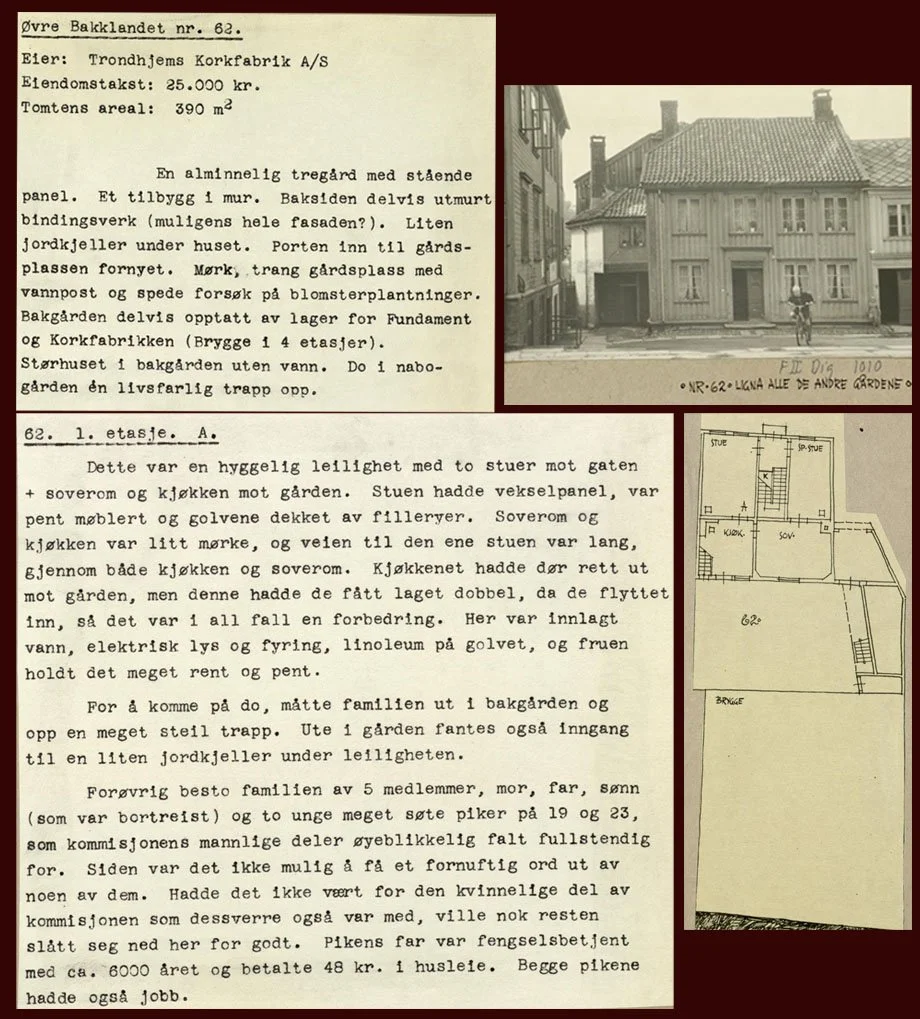 I 1949 foretok NTH en boligundersøkelse i "slummen" på Bakklandet. Kommisjonen var nok sjokkert over boforholden i enkelte gårder, men kommentarene er tidvis veldig fornøyelige.